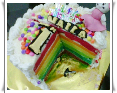 Rainbow cake ultah pada tanggal Agustus 23, 2012 Dapatkan link Facebook X Pinterest Email Aplikasi Lainnya Order rainbow cake bentuk bulat dari Mbak Sukma di Sidoarjo dan Retno teman dari Jakarta untuk ultah Ibu mertua di Surabaya. Order dari Mbak Sukma Ini setelah dipotong :) Order dari Retno Komentar